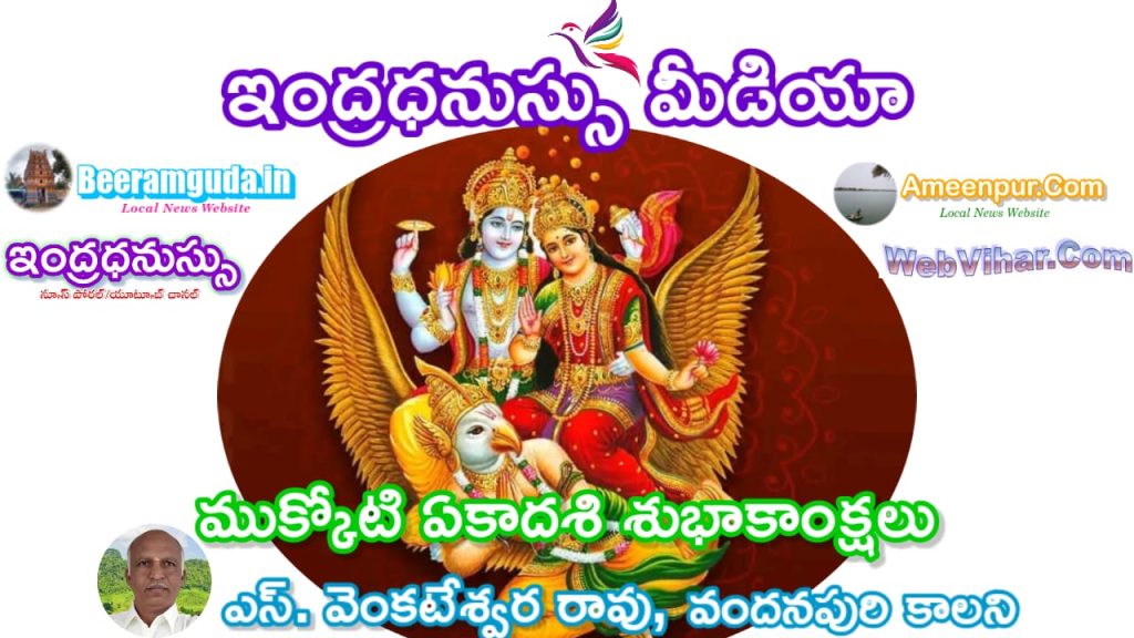ఇంద్రధనుస్సు మీడియా ఆన్ లైన్ న్యూస్ వెబ్సైట్స్ చూస్తున్న అందరికీ ముక్కోటి ఏకాదశి శుభాకాంక్షలు! సంవత్సరంలో వచ్చే ఇరువది నాలుగు ఏకాదశుల్లో ముఖ్యమైనది ముక్కోటి ఏకాదశి అని మన శాస్త్రాలు తెలుపుతున్నాయి. ముక్కోటి ఏకాదశి విశిష్టత, ఉత్తర ద్వారం ద్వారా దర్శనం ఎందుకు చేయాలి? వీటి గురించి పూర్తి వివరాలు మీ కోసం అందిస్తున్నది ఇంద్రధనుస్సు మీడియా!!